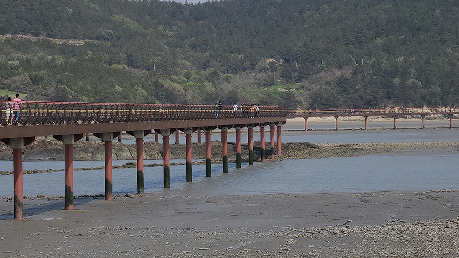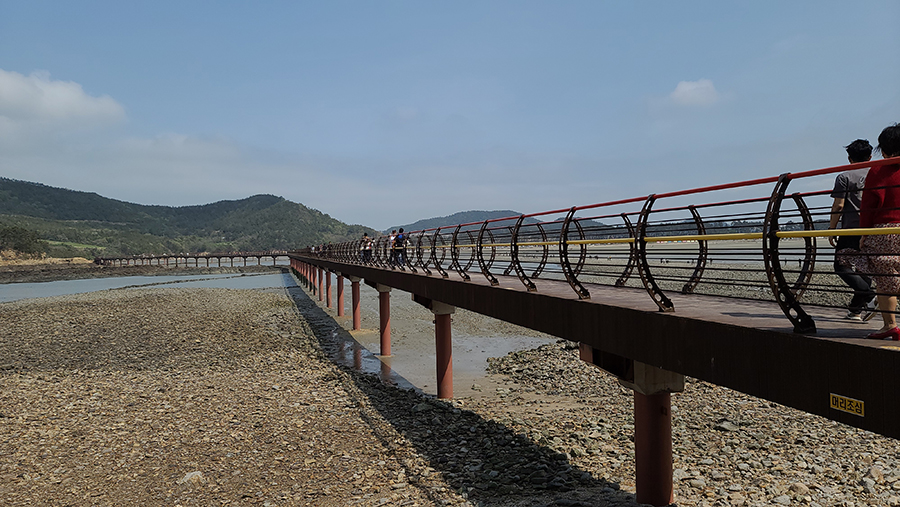 힘들게 걸어갔었기 때문에 돌아올 때는 다리로 건너오지 않고 다리 밑에 모세의 기적처럼 물이 빠져서
