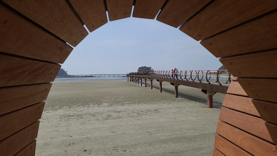 목조데크로 이루어져 있는 해상 보행교인데 바람이 어찌나 많이 부는지